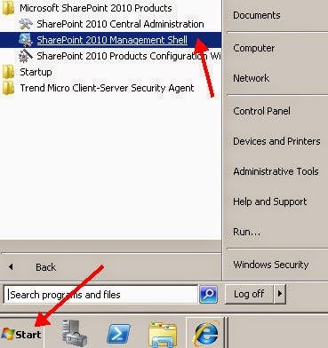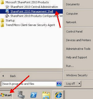 Start menu, click All Programs >> Microsoft SharePoint 2010 Products >> SharePoint 2010 Management Shell.