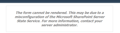 Esse erro ocorre porque o “State Serve” não esta configurado na Farm, podemos resolver de duas maneira: