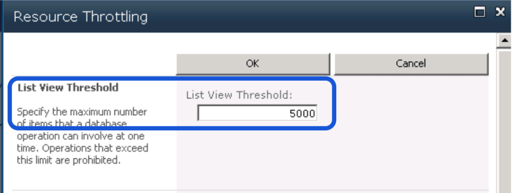 O SharePoint 2010 é capaz de lidar com uma quantidade muito grande de dados. Mas, na maioria das vezes, não queremos retornar todos os dados em uma única consulta. Para ajudar com isso, na versão 2010 foi implementada a configuração de limitação de lista que nos permitem especificar quantos itens podemos consultar antes que o limite atingido e aborte a consulta.