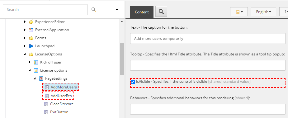 - AddMoreUsers – /sitecore/client/Applications/LicenseOptions/StartPage/PageSettings/AddMoreUsers