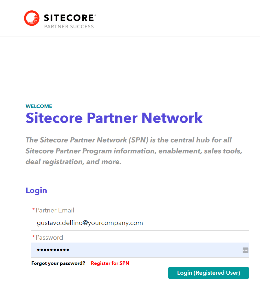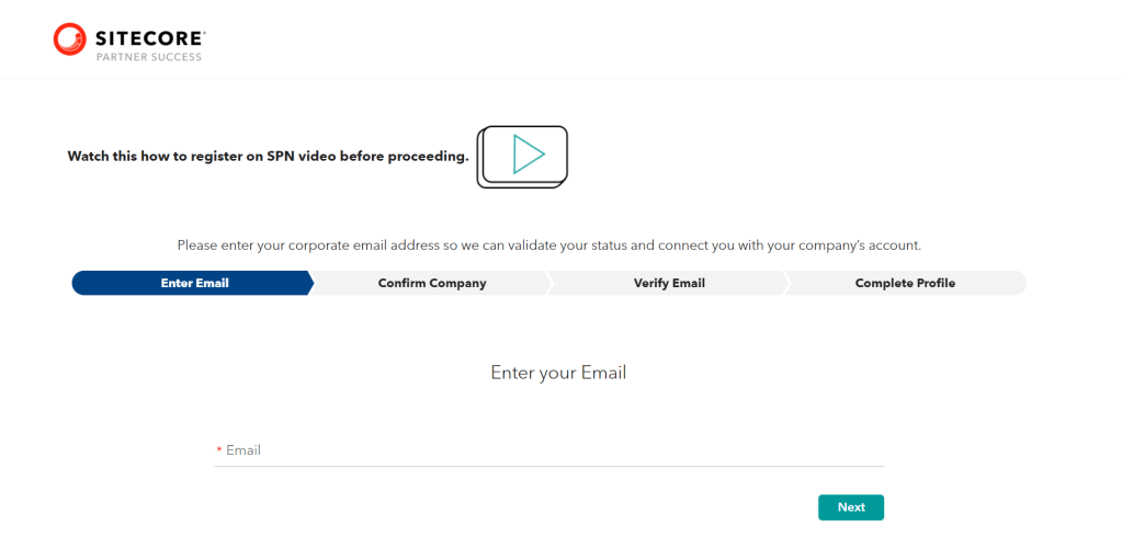 - Select Register for SPN Registration at the botton if you haven’t registered yet. Keep in mind that you must register using your official email address to be acknowledged as a partner.