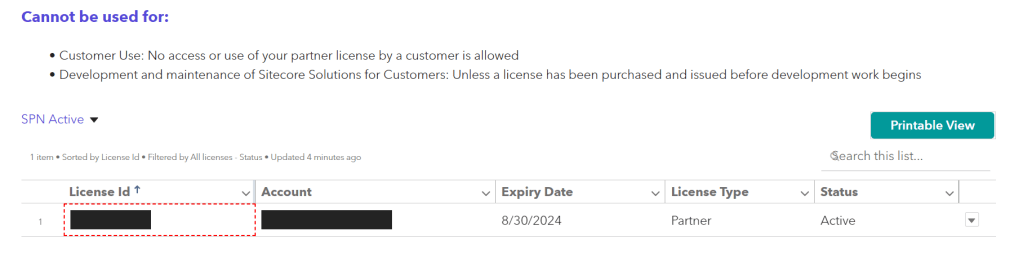 - On the Partner License Page, scroll down to the bottom section. This action will display a list of the Partner Licenses associated with your account.