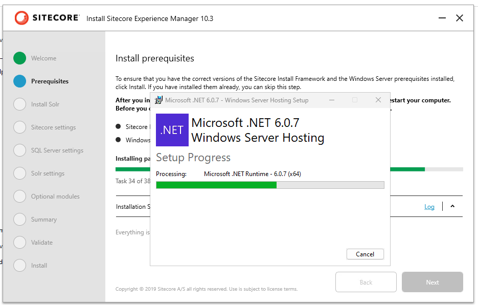 This step of the installation of diverse components, including .Net Framework 4.8.0, necessary Windows Server prerequisites, including IIS, and other essential modules.