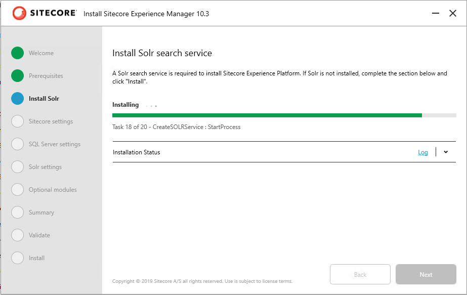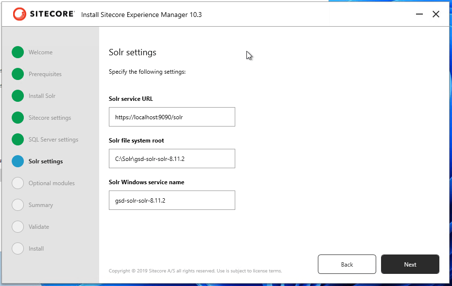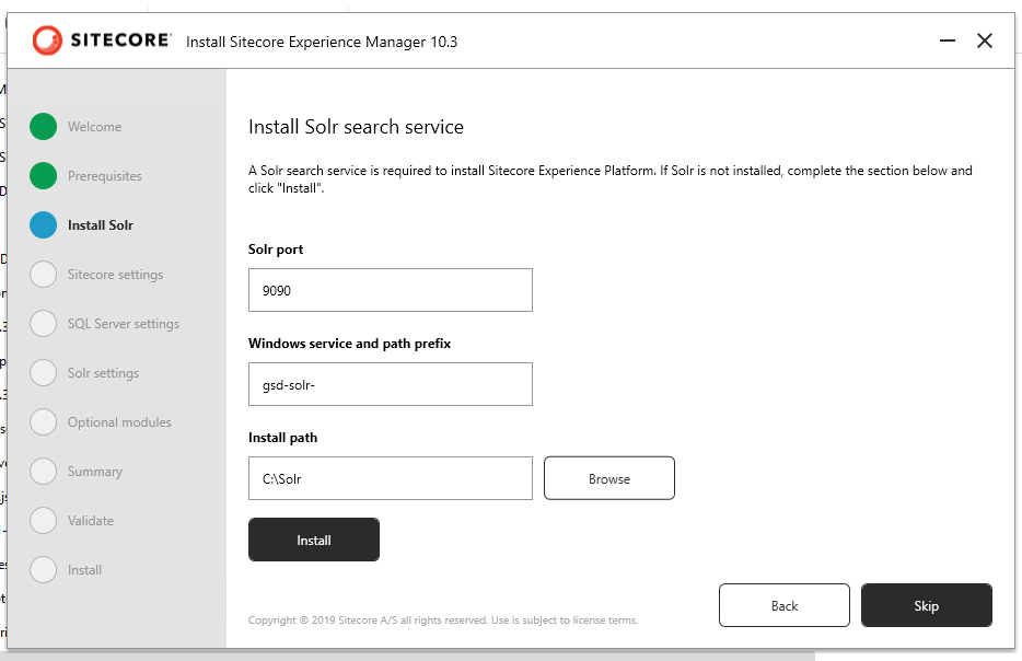 Click on the setup again and proceed until you reach the Install Solr search service screen.
